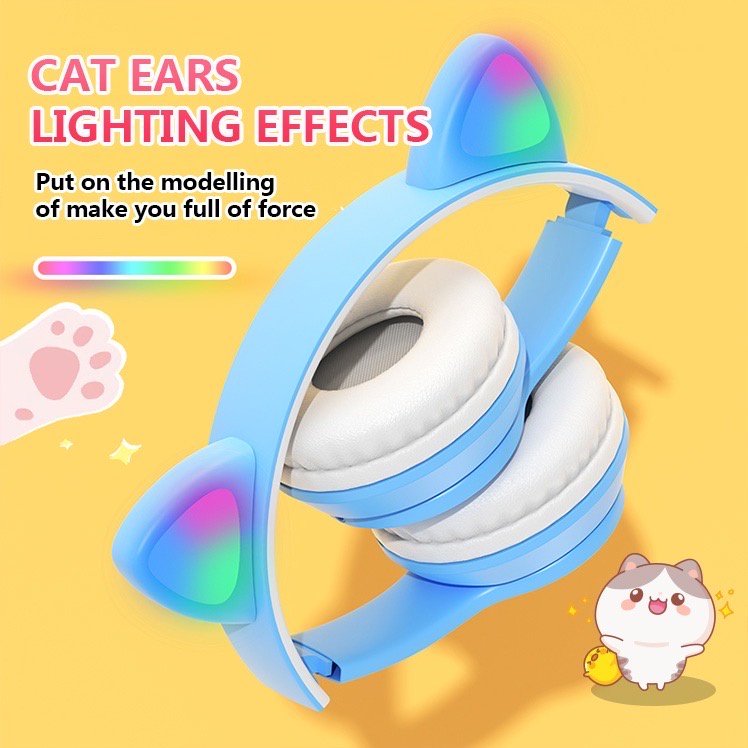 Fone de Ouvido Sem Fio com Design de Gatinho – LED – Microfone
